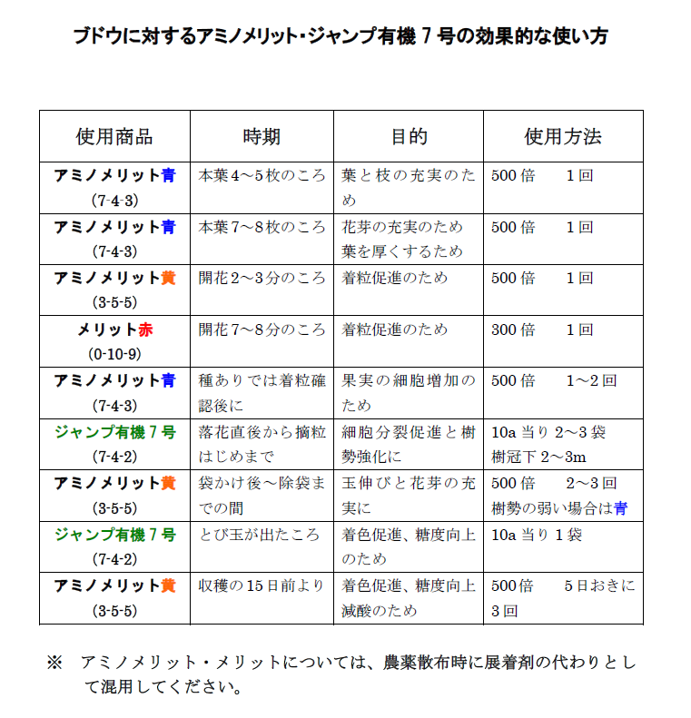 ブドウに対するメリット・ジャンプ有機7号の使用提案です。